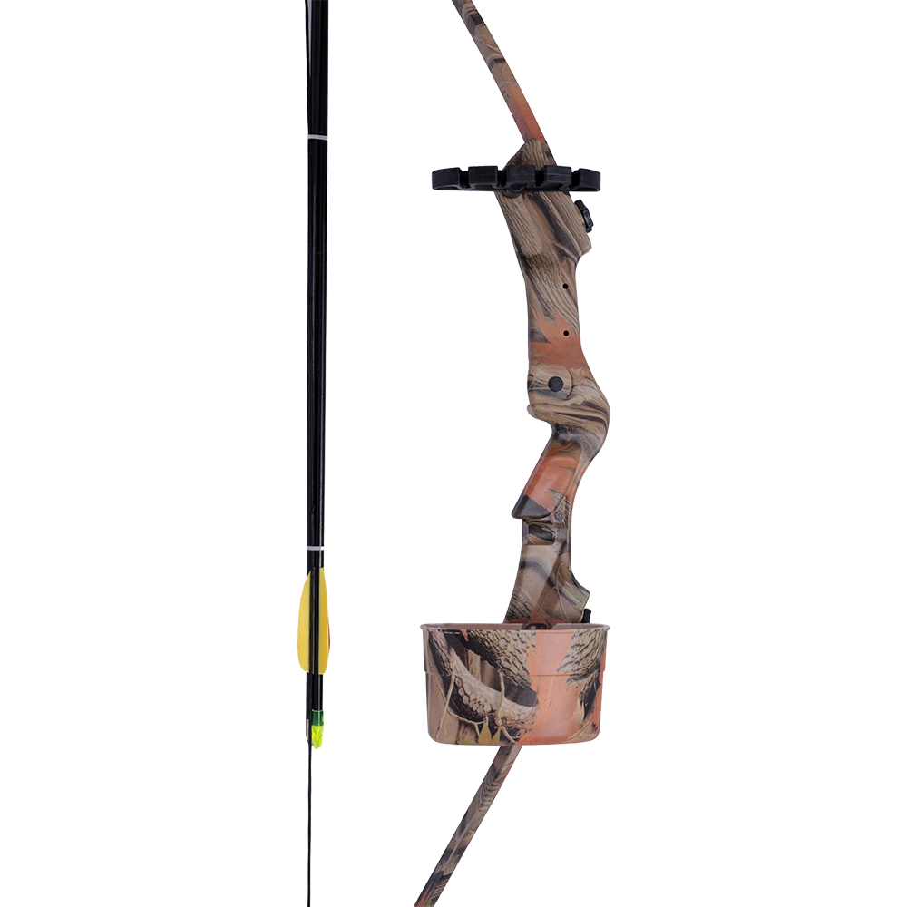 Рекурсивный лук является, пожалуй, самым популярным выбором среди профессиональных лучников на данный момент. Основное достоинство рекурсивной конструкции перед классической прямой является особый изгиб плеч – при натяжении тетивы плечи изгибаются в противоположную их изгибу сторону, выполняя два движения одновременно, что значительно ускоряет темп стрельбы и передает стреле большую энергию. За счёт этого стрела получает большую скорость полёта, меньше рассеивается в полёте, что способствует повышению точности, и при попадании выдает большую убойную силу. Помимо этого, современные модели рекурсивных луков могут похвастаться своим сравнительно небольшим весом и простой конструкцией, которую можно легко обслужить в случае поломки. Представленный рекурсивный лук ‘RB007’ разработан компанией “Man Kung”. Эта компания была основана ещё в 1988 году и за всё время своего существования специализировалась на изготовлении арбалетов, луков, ножей и прочих товаров. Отличное соотношение цена-качество товаров “Man Kung” заработало немалое доверие покупателя на мировом рынке. Начальная скорость вылета стрелы 30 м/сек. Для данного лука рекомендуется использовать стрелы от 26 до 28 дюймов. Усилие натяжения 9,1 кг (20 lbs). Длина равна 116,8 см, длина растяжки – 61 см. Вес 750 г. Модель имеет окрас ‘Autumn camo’. В комплект поставки входит: сам лук, 2 стрелы, кивер, крага и крепеж. Приобрести «Лук Man Kung RB007, рекурс., autumn camo, 20lbs, стрелы 2 шт., кивер, крага, крепеж», а также многие другие товары для охоты, рыбалки, туризма и спорта вы можете в нашем интернет-магазине по привлекательным ценам.