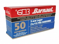 Патрон нарезной БПЗ калибр 9mm Luger FMJ Silver Subsonic 9,8гр оцинкованная гильза(в пач 50)