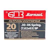 Патрон нарезной БПЗ калибр 7,62х63 (30-06) SPRG SP покрытая полимером гильза 9,1 гр.(в пачке 20 шт.)(в кор 500)